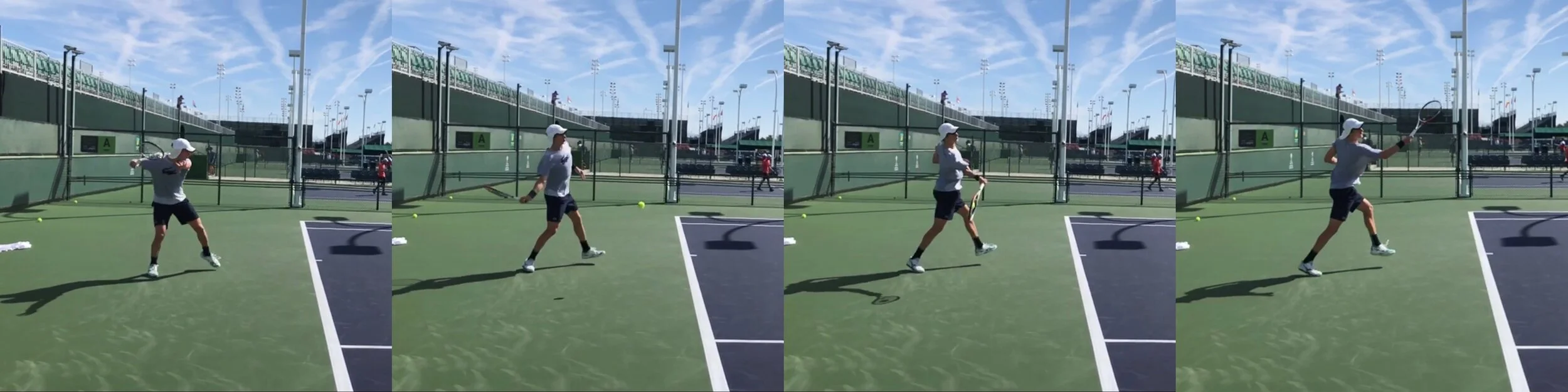 ATP player Marc Polmans hitting a rally forehand. Notice the impact in front.